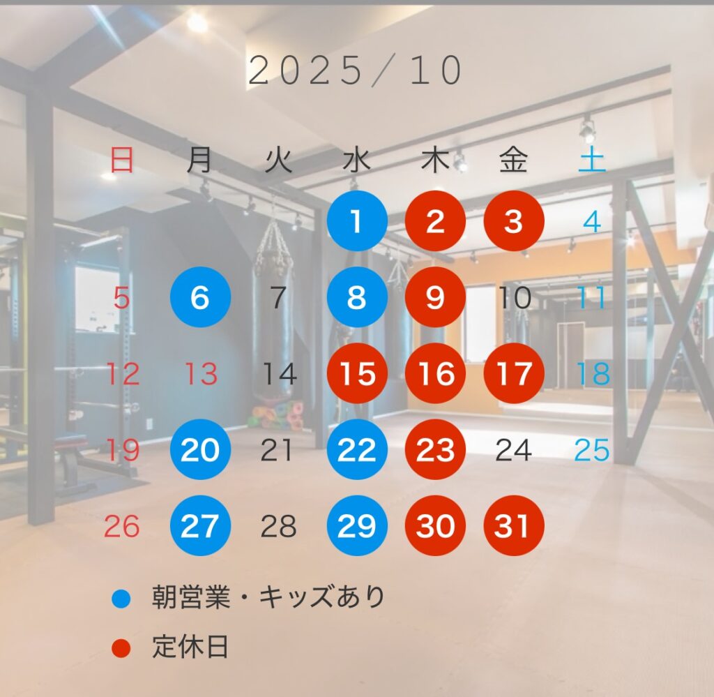 10月の営業日になります。
